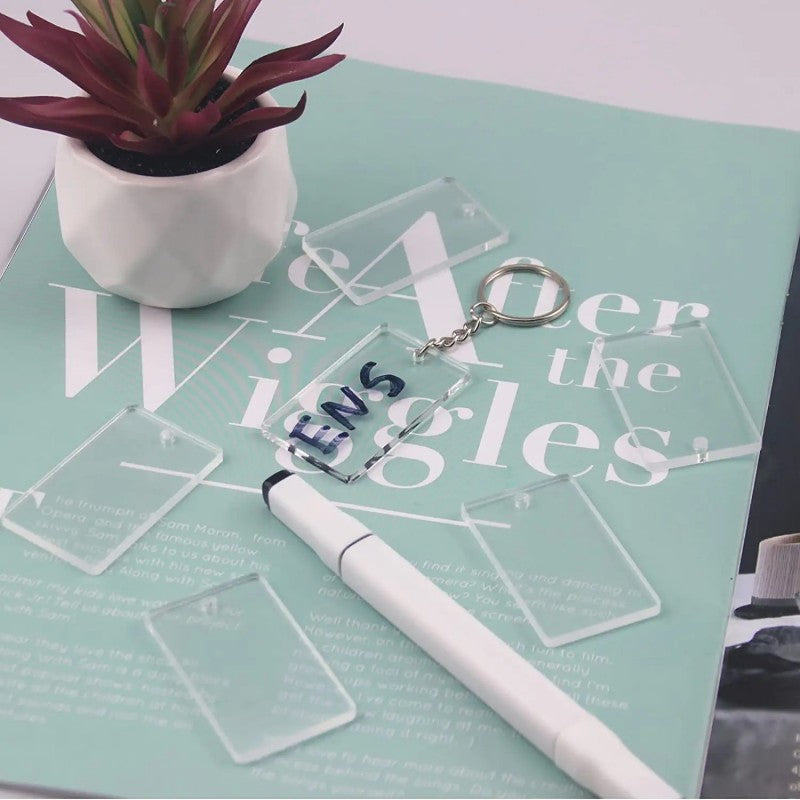 Contenido: Acrilico, argolla para llavero y arandela para unir el acrilico con la argolla de llavero.