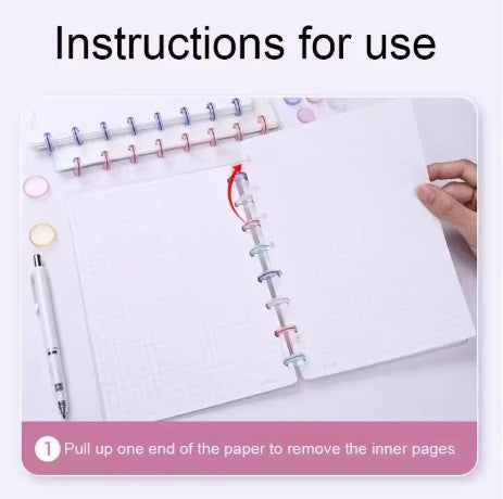 Con el sistema de encuadernación de discos podras encuadernar tus agendas, libretas o calendarios de una forma moderna y colorida . Los discos de expansión se destacan por su diseño estético y funcional, ofreciendo una colocación manual rápida y sencilla para una experiencia eficiente.