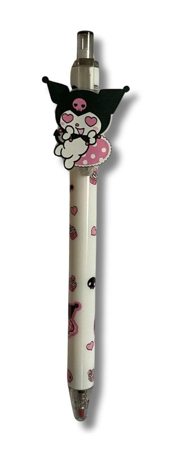 Un esfero retráctil de Kuromi es un bolígrafo diseñado con detalles inspirados en el personaje Kuromi de Sanrio.