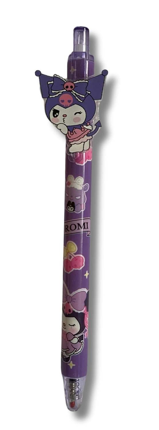 Un esfero retráctil de Kuromi es un bolígrafo diseñado con detalles inspirados en el personaje Kuromi de Sanrio.