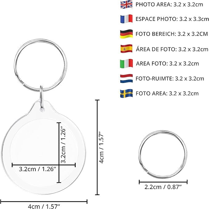 Simplemente inserta tu imagen en la parte en blanco del llavero y luego coloca cuidadosamente la cubierta sobre la parte superior para sellarla. Puede insertar una imagen de doble cara o dos imágenes separadas para mostrar en cada lado. Una vez cerrado estos no se volverán a abrir.