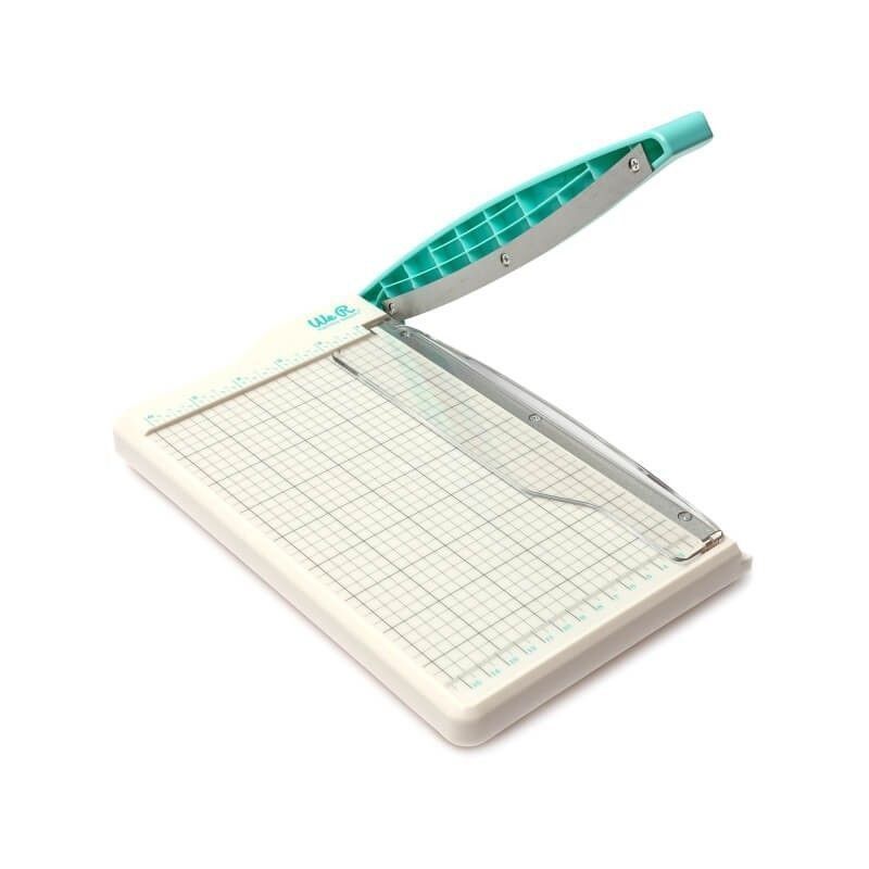 Esta mini guillotina es perfecta para tarjeteria, agendas y planificadores y otros proyectos pequeños. Corta limpiamente hasta 3 hojas de papel (en torno a 160 gr) y de alto hasta 8,5 pulgadas (21,6 cm).