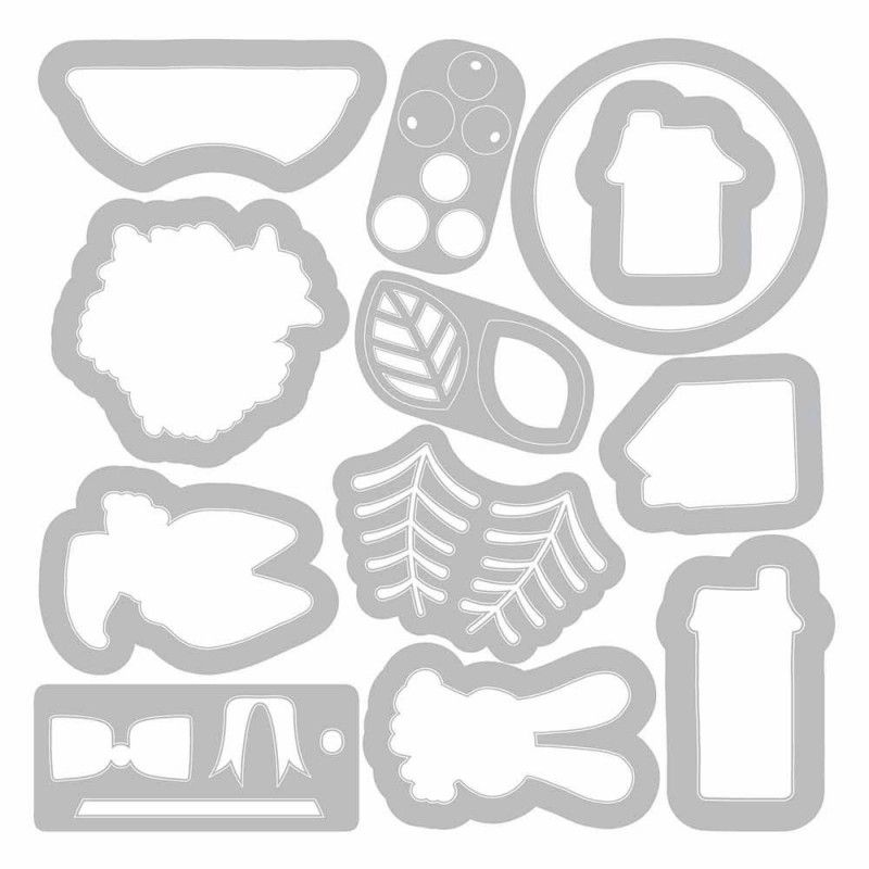 Contiene: 12 troqueles y 1 juego de sellos